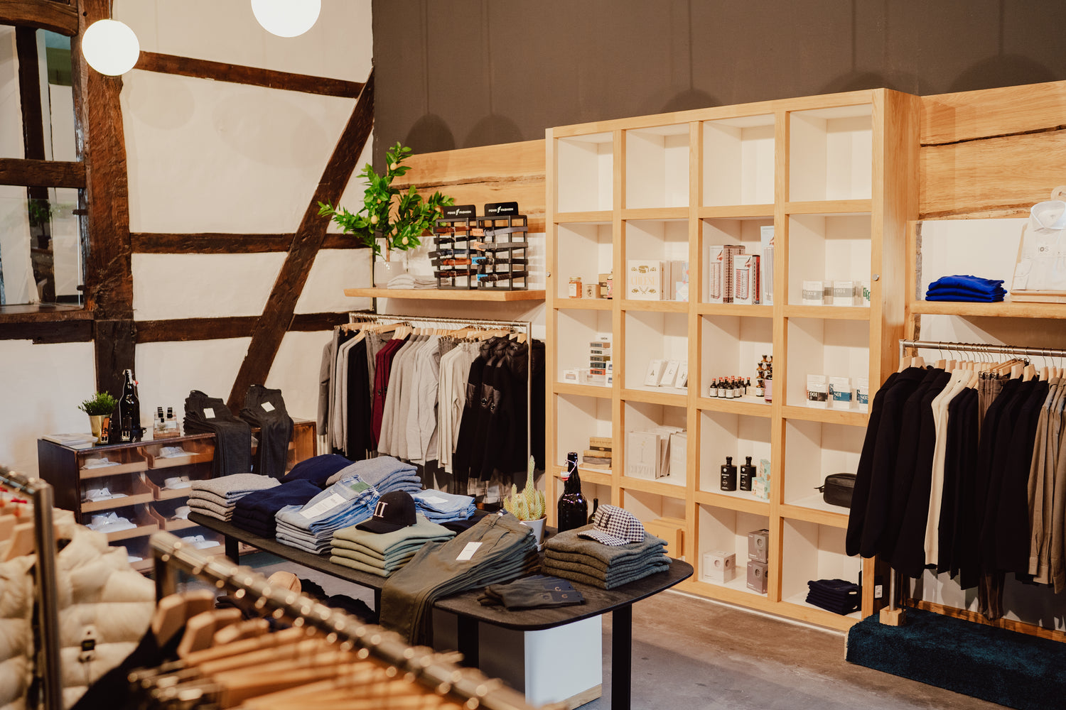 Cooler, moderner Laden in altem Fachwerkhaus. Beim Umzug des OAK Concept Stores kam alles aus einer Hand: Planung, Entwurf und Umsetzung.